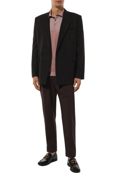 Поло с небольшими боковыми разрезами сшили из пике на основе хлопка и льна. Трикотаж неравномерно впитал пигмент при окрашивании, поэтому модель кроя regular fit получилась меланжевой.
