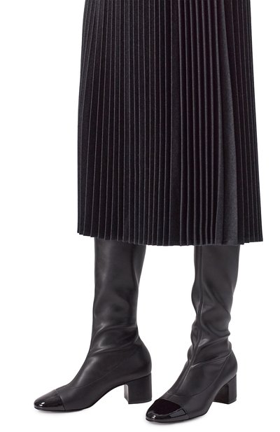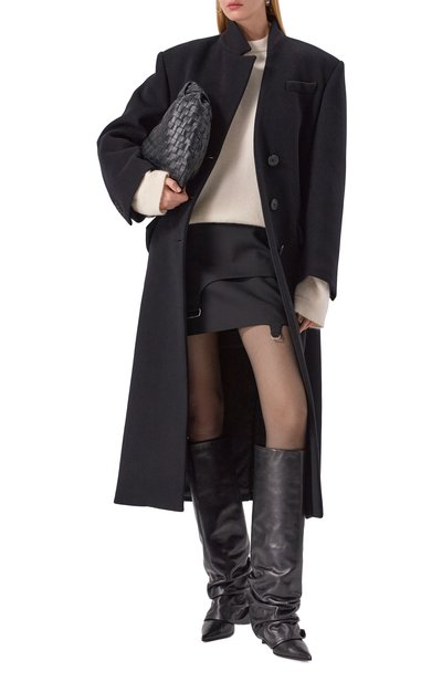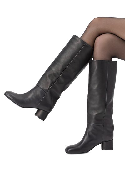 Сапоги Andy с широкими голенищами, имитирующим присборенные брючины, сшили из тонкой наппы, а для внутренней отделки использовали гладкую козью кожу. Пару с зауженным мысом поставили на высокую шпильку.