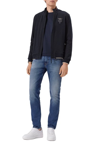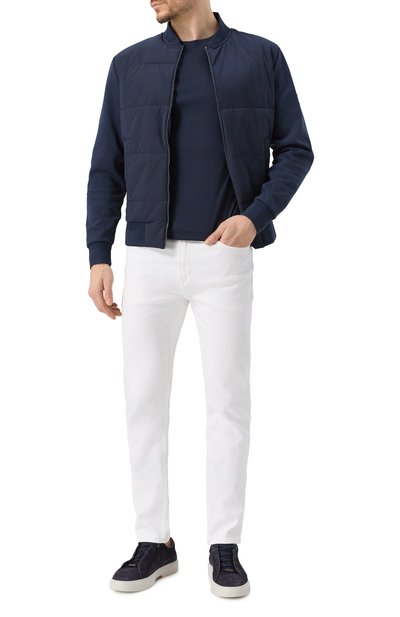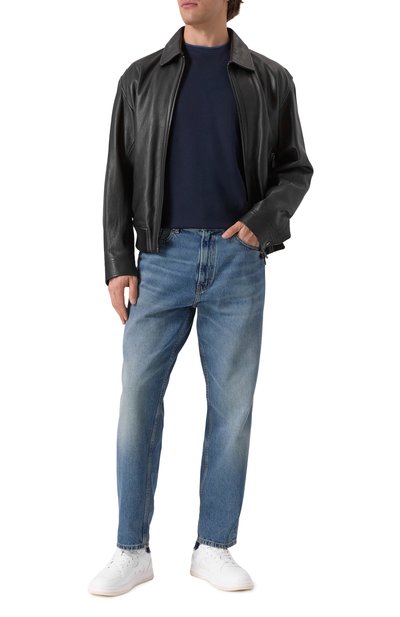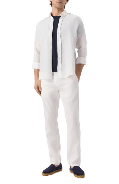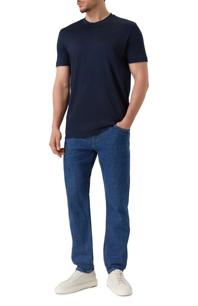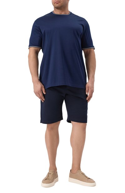 Для пошива базовой футболки H-Thompson с круглой горловиной использовали пике из лиоцелла с добавлением хлопка. По бокам предусмотрели разрезы, над одним из которых – этикетка с логотипом марки.