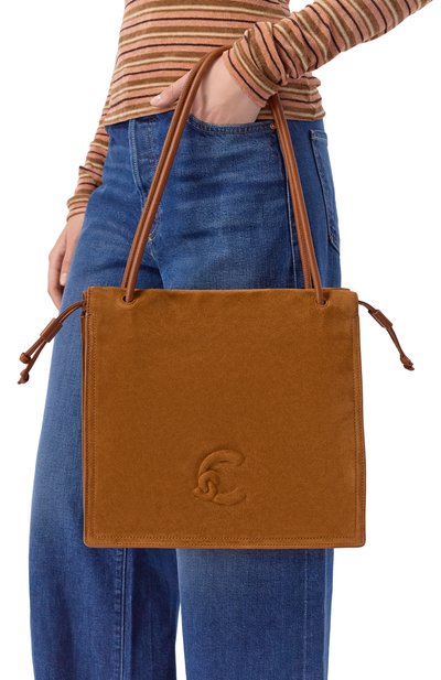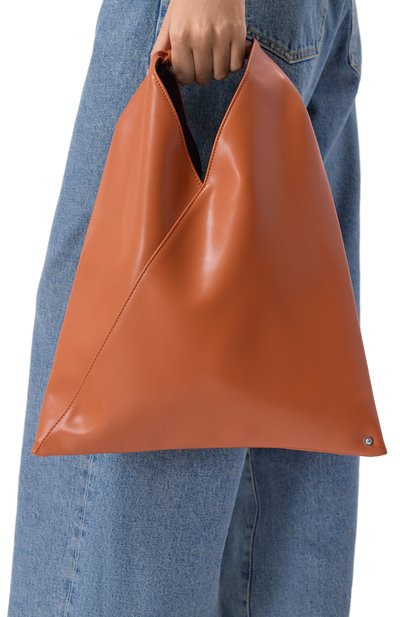 Сумку Japanese, вдохновленную оригами, выполнили из искусственной кожи. Аксессуар с регулируемым плечевым ремнем украсили фирменной строчкой сзади и тисненым числовым кодом на короткой ручке.