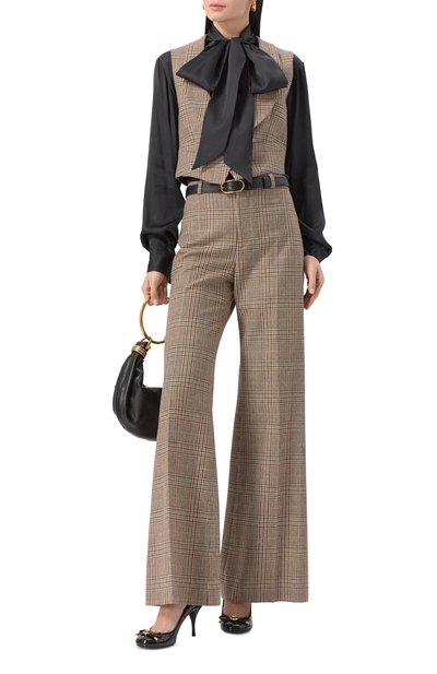 Туфли-лодочки Gianni Ribbon из лакированной телячьей кожи названы так по атласной ленте на союзке. Декор дополнили круглой пряжкой Medusa '95 с покрытием в тон. Пару на высокой шпильке дополнили внутренней отделкой из кожи козы и ягненка.