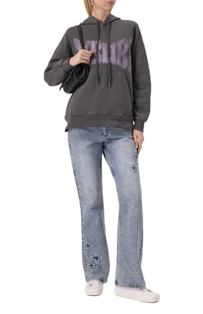 Oversize-худи со спущенной линией плеч сшили из хлопкового футера. Модель с графичным принтом спереди органично впишется в непринужденный повседневный образ с джинсами.