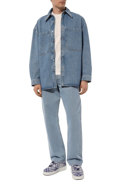Кеды Box на брендированной подо шве сшиты из нейлона стрейч в фирменную клетку. Гамму узора повторяет шнуровка со знаковыми деталями, напоминающими колючую проволоку: двумя на правом изделии и одной на левом. Модель с гладкой стелькой отделали внутри мягкой сеткой.