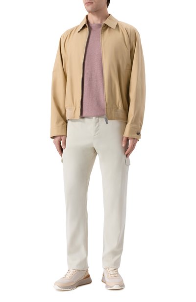 Джемпер с короткими рукавами легко впишется в повседневный образ с футболкой, брюками и кедами. Модель с рифленой отделкой вдоль круглого выреза связали из льняной пряжи с добавлением кашемира и шелка.