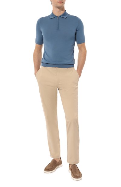Поло с короткими рукавами гармонично впишется в базовый гардероб. Модель кроя Regular fit выполнили из трикотажа на основе льна, смешанного с кашемиром и шелком.
