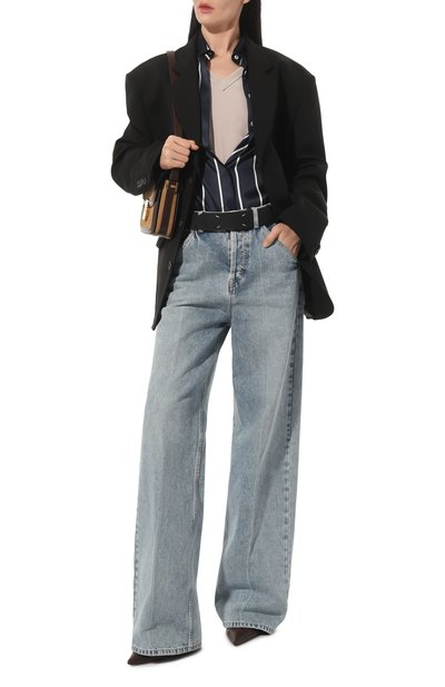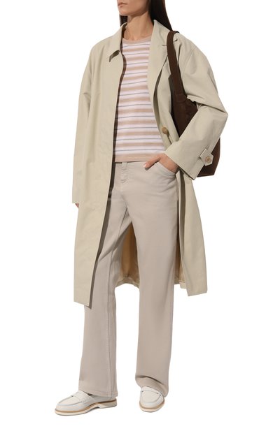 Свободную футболку с V-образным вырезом и слегка спущенной линией плеч сшили из хлопкового джерси с добавлением шелка. Модель органично впишется в повседневный образ любой сложности.