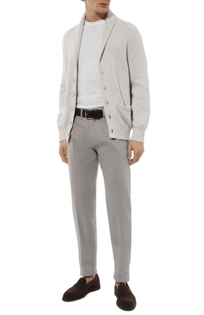 Льняные брюки с защипами, стрелками и отворотами органично впишутся в летний гардероб. Комфортную посадку модели с четырьмя карманами обеспечит эластичная вставка на поясе сзади.