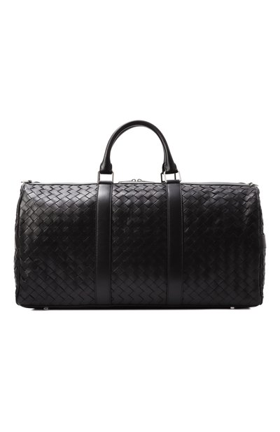 Сумку Intrecciato Cabin Duffle сплели из узких полос телячьей кожи, а для подкладки использовали канвас. Внешний боковой карман и один из трех внутренних карманов закрываются молниями. В комплекте — регулируемый плечевой ремень.