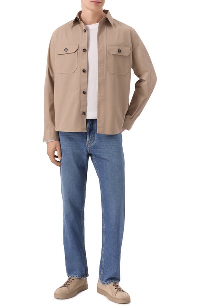 Вышитый логотип на заднике и тисненый на язычке подчеркивает принадлежность кедов бренду. Пару на полимерной подошве выполнили из замши и отделали внутри гладкой кожей.