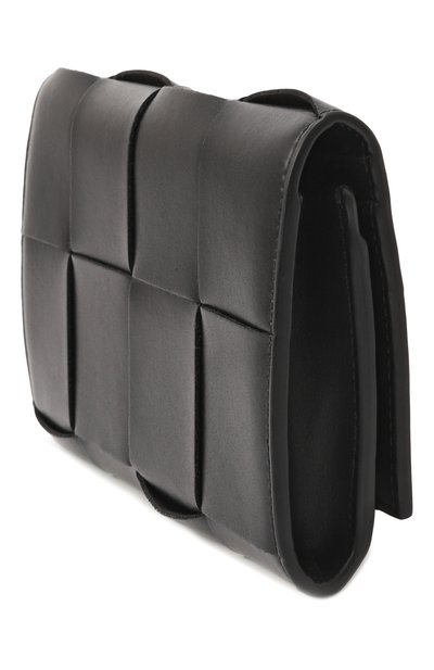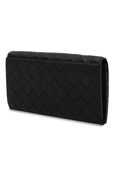 Портмоне сплели в фирменной технике intrecciato из полос телячьей кожи. Внутри аксессуара с двумя отделениями разместили восемь карточных слотов, отсеки для купюр и карман для монет, застегивающийся молнией.
