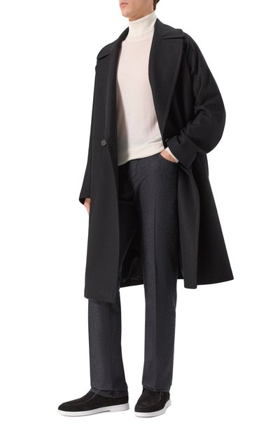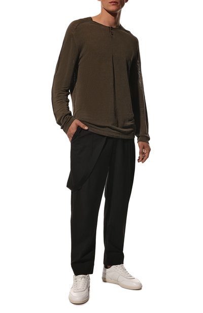 Брюки из шерсти первого пострига станут основой повседневных образов разной степени сложности. Помимо двух боковых карманов и одного заднего у модели предусмотрели накладной карго, украсив его брендированной вышивкой, будто выполненной от руки.