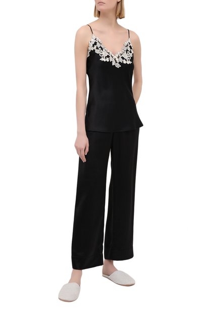 Удлиненный топ из коллекции La Dolce Vita сшили из эластичной шелковой ткани. Линию декольте, спинку и низ с невысоким разрезом спереди подчеркнули контрастным кружевом. Бретели регулируются слайдерами.