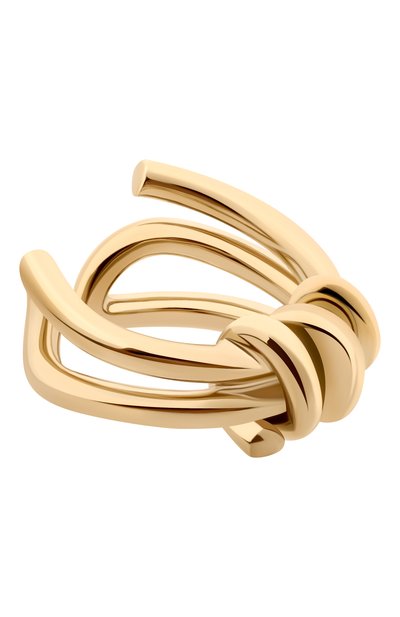 Жесткое незамкнутое колье, словно обвитое ажурными цепочками, выполнили из латуни без содержания никеля. Аксессуар покрыли 24-каратным желтым золотом.