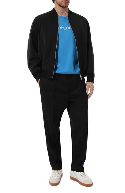 Футболку с горловиной в рубчик выполнили из хлопкового джерси. Спереди модель украсили контрастным принтом с логотипом марки, а сзади разместили мотив Bones Stacked с эмблемой бренда.