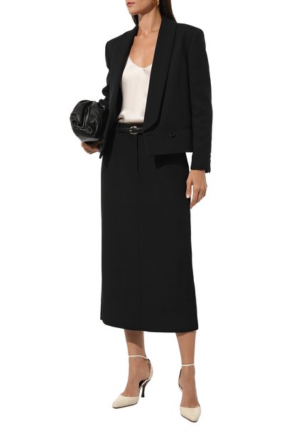 Для создания туфель Juno с внутренней отделкой из козьей кожи использовали гладкий материал из полимера и текстиля. Геометричный силуэт пары с вытянутым квадратным мысом подчеркивает узкий контрастный кант вдоль высокого каблука и подошвы.