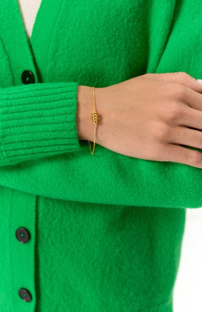 Двойной браслет Sublima выполнили из латуни с покрытием цвета розового золота. Регулируемый аксессуар декорировали круглой вставкой с паве и подвеской с эмблемой бренда.