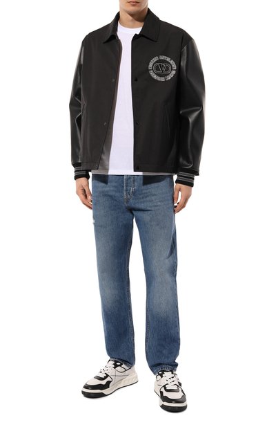 Двухцветные кеды Freedots с перфорацией на союзке и резиновыми шипами-пирамидами на ранте сшили из гладкой телячьей кожи. Модель украсили брендированным патчем на язычке и рельефными логотипами сбоку и на широкой подошве.