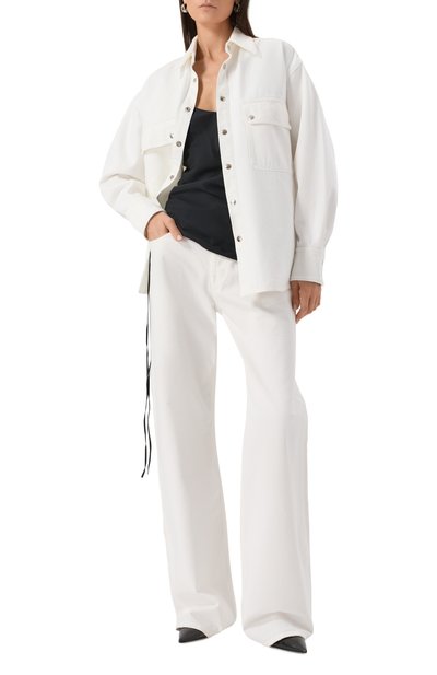 Рубашка со слегка укороченными рукавами будет уместна в образах любой палитры. Модель из чистого льна застегивается обтяжными пуговицами.
