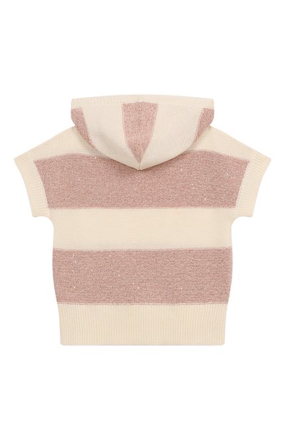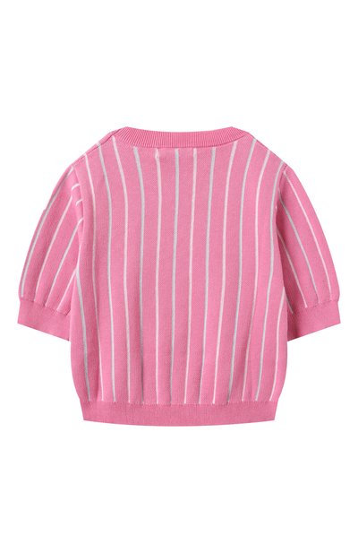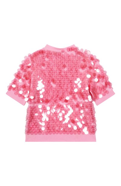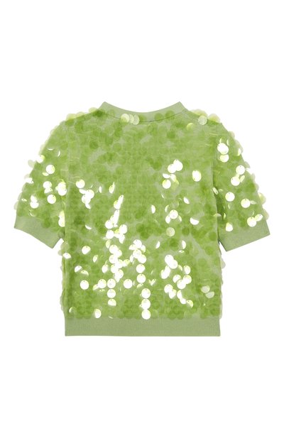 Пуловер с короткими рукавами реглан связали резинкой из вискозной пряжи с добавлением полиамида. На груди расположили миниатюрную перламутровую пластину в виде знакового тотемного орла.