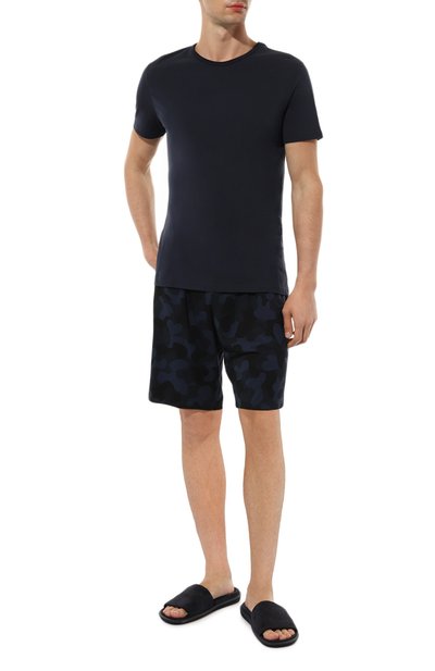 Шорты с широким поясом-кулиской сшиты из хлопкового трикотажа с добавлением полиэстера. Модель с двумя врезными карманами дополнена лампасами с эмблемами марки.