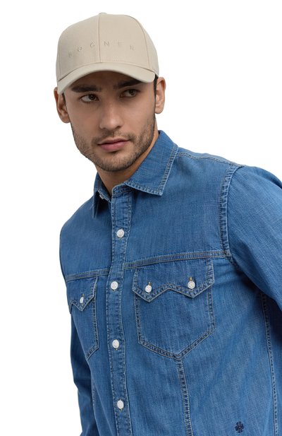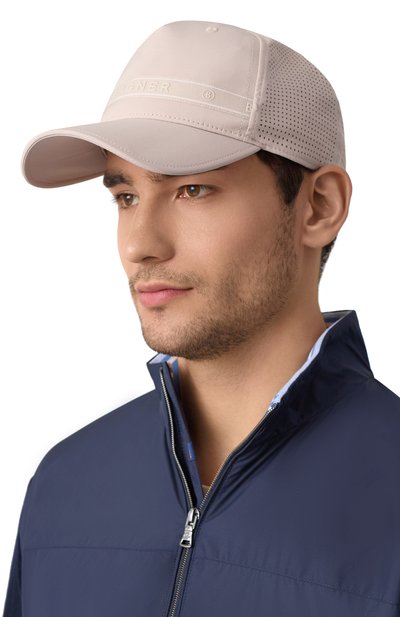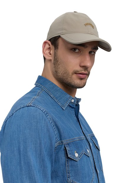 На тулье бейсболки из хлопкового габардина нитью в тон вышили логотип марки. Сзади предусмотрели регулируемый ремешок с металлической брендированной пряжкой.