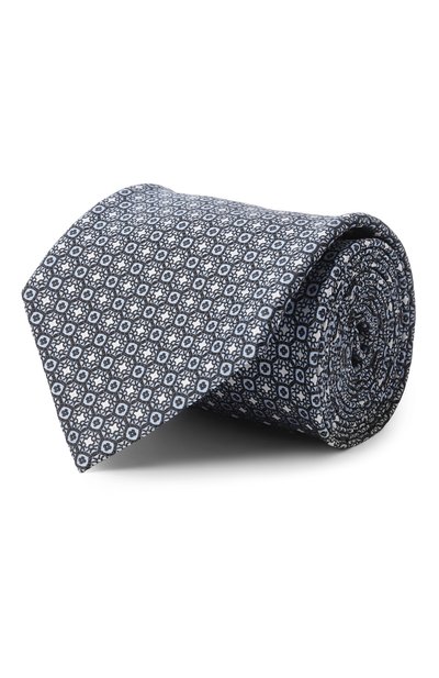 Галстук изготовили из шелка с геометрическим мотивом. Широкий аксессуар, подходящий для мужчины высокого роста, позволяет сформировать узел любого уровня сложности.
