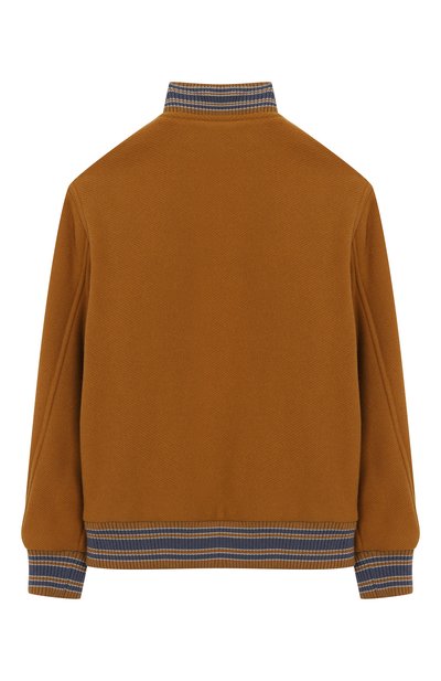 Бомбер с трикотажными полосатыми манжетами, низом и воротником выполнили из стрейчевого полиэстера с принтом MA Quad. На груди вышили логотип. Куртка с двумя б оковыми карманами застегивается брендированными кнопками.