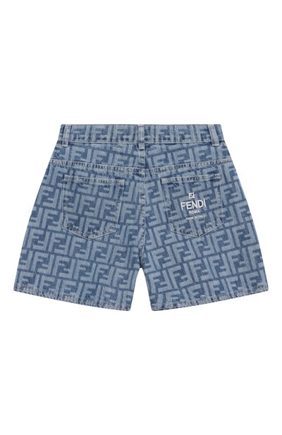 Шорты из хлопкового денима украсили накладкой-эмблемой со стразами, которой вторит брендированная нашивка на одном из пяти карманов. Модель с эластичной талией дополнили съемным поясом-лентой.