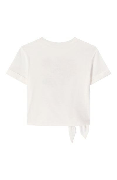 Укороченную футболку из коллекции Everyday сшили из хлопкового джерси с цветочным принтом, который нанесли вручную на заранее подготовленные детали. Спереди модель дополнили аппликацией в виде монограммы DG.