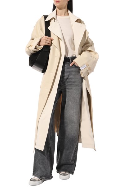Кеды Gail сшили из кожи с металлизированным покрытием, блеск которого поддержали пряжкой с кристаллами на заднике. Модель на широкой брендированной подошве дополнили двумя короткими молниями вдоль шнуровки.
