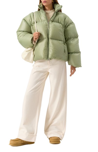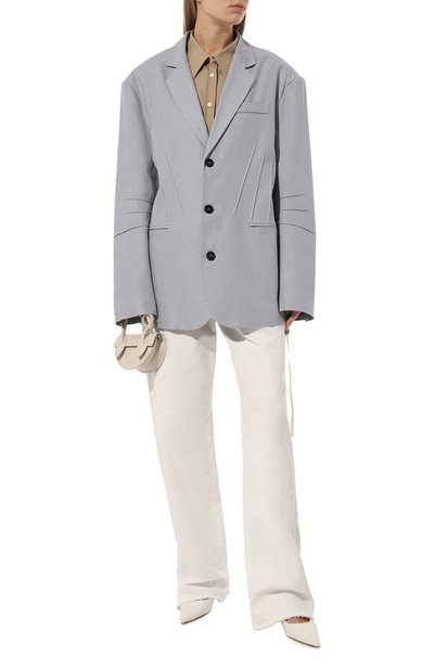 Для пошива широких джинсов Lisa с бахромой по краям и шестью карманами использовали хлопковый деним. Брючины сзади снизу украсили разрезами, а слева модель дополнили петлей со съемным шнуром из перламутровых бусин разного размера. На поясе закрепили фирменный патч.