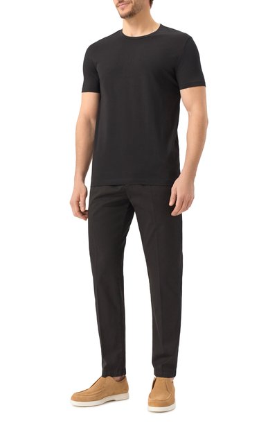 Замшевые лоферы дополнили кожаной стелькой фирменного желтого оттенка Golden Cream и установили на сплошную резиновую подошву. Союзку украсили перемычкой с морским узлом из двух шнуров.