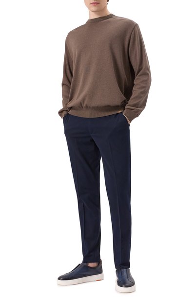 Родина Santoni — городок Корридония в итальянском регионе Марке, известном на весь мир мастерством обработки кожи и изготовления первоклассной обуви. Именно в Марке в 1975 году Андреа Сантони открыл небольшую мастерскую по созданию мужских туфель и ботинок. Редкое сочетание артизанальных техник и актуального дизайна быстро принесло бренду успех.