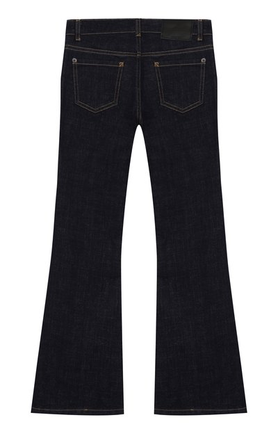 Расклешенные джинсы с разрезами по бокам сшиты из хлопкового денима. Модель с пятью карманами украшена сзади патчем с эмблемой марки, а сбоку — золотистой брендированной пластиной.