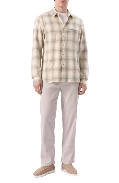 Для пошива клетчатой рубашки, представленной эксклюзивно в ЦУМе, использовали хлопковую фланель. Модель с закругленной линией низа дополнили накладным нагрудным карманом с брендированной нашивкой.