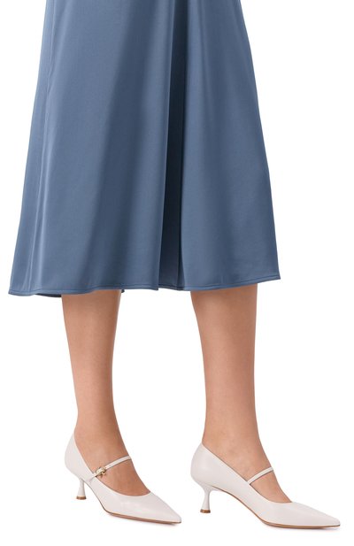 Туфли Bowow оправдывают свое название крупным бантом на союзке. Пару из козьей кожи поставили на невысокий каблук, декорированный эмблемой VLogo Signature. Стельку украсили принтом в виде ландышей.