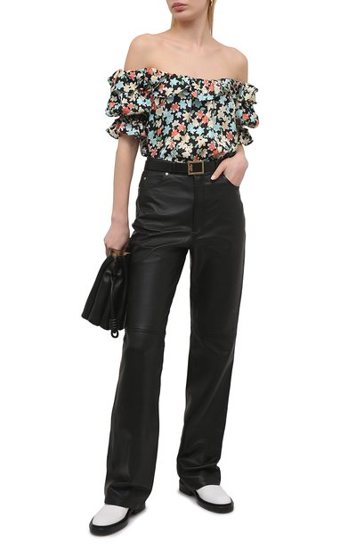 В коллекцию Warm Weather вошла блуза из хлопкового поплина с ярким цветочным принтом. Модель с английским воротником, отворотами на рукавах и защипами сзади завязывается на узел внизу.