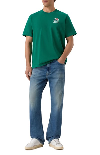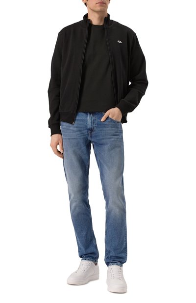 Джинсы Neaal с брендированными нашивкой и патчем сшили из переработанного хлопкового денима. Модель из коллекции Royal Eagle дополнили пятью карманами, украсив задние вышивкой в виде крыльев.
