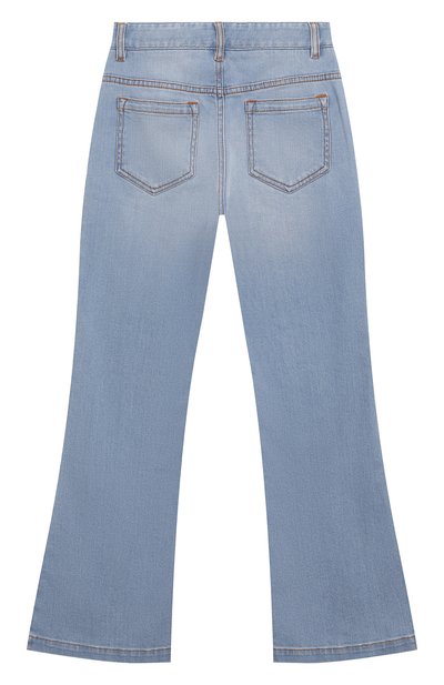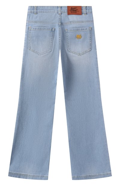 Выбеленные джинсы с пятью карманами и фирменной фурнитурой украсили брендированным патчем сзади. Прямую модель сшили из жесткого денима.