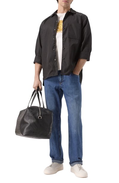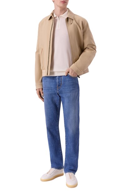 Выбеленные джинсы декорированы небольшими потертостями, заломами и брызгами краски. Пояс подчеркнут акцентным фирменным патчем, а ширинка – брендированным ярлыком. Модель с пятью карманами сшили из хлопкового денима.