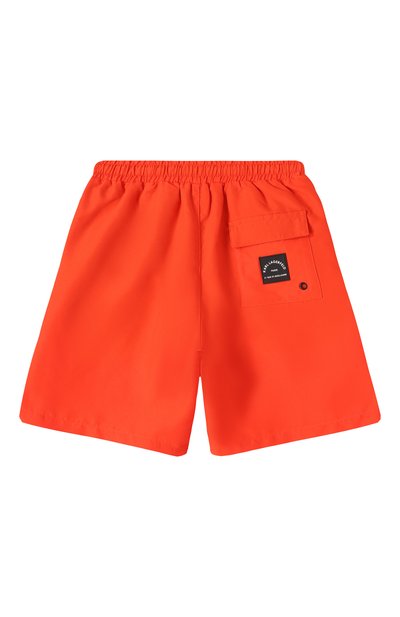 Плавки-шорты из полиамида дополнили карманом карго на левой брючине. Модель с эластичным поясом украсили брендированной линзой.