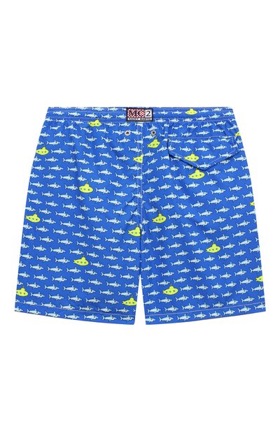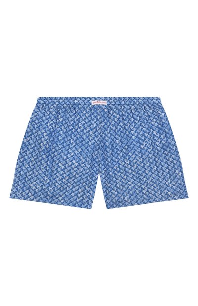 Плавки-шорты с паттерном в виде черепах выполнили из полиэстера. Отрегулировать посадку можно эластичным поясом-кулиской, который дополнили брендированной нашивкой сзади.