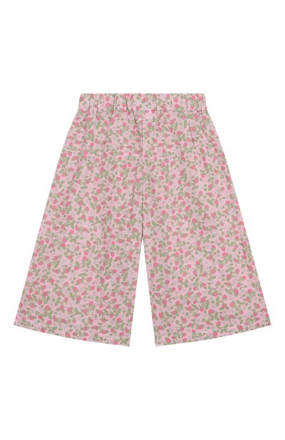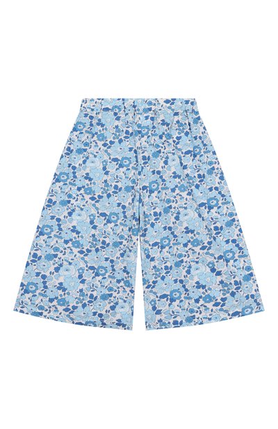 Брюки-палаццо выполнили из хлопкового поплина Liberty с цветочным принтом Betsy Fluo. Легкую модель дополнили широким поясом на резинке.