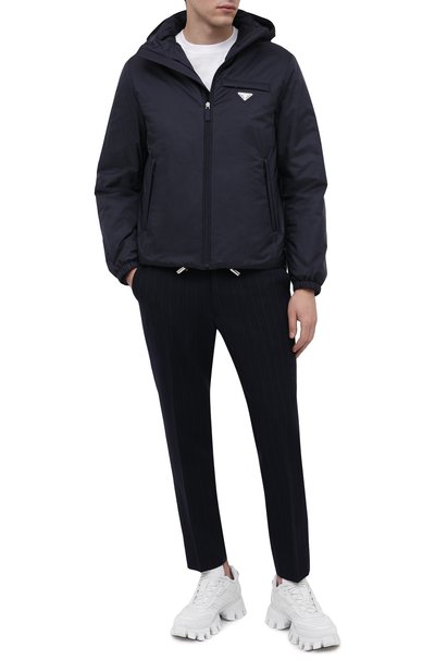 Для пошива куртки с капюшоном использовали водоотталкивающий нейлон. Модель с двумя карманами на молниях украсили брендированными надписями и нашивкой на рукавах, а сзади расположили название коллекции Day-namic.
