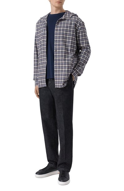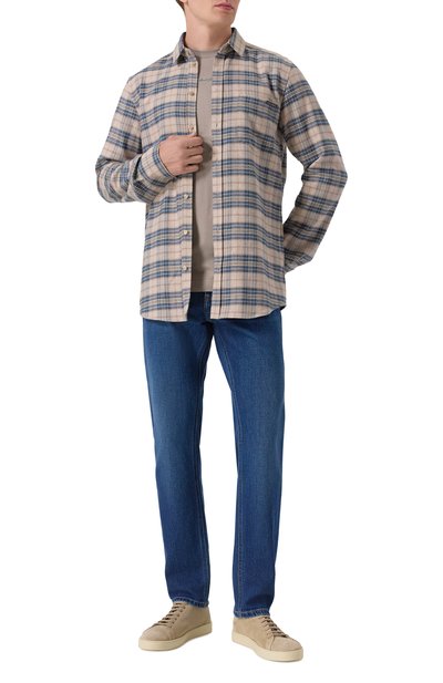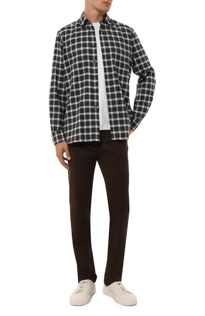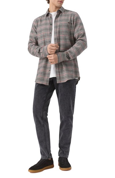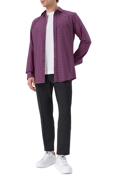 Рубашку с бантовой складкой на спинке и скошенными манжетами сшили из клетчатой хлопковой ткани. Нагрудный карман модели, представленной эксклюзивно в ЦУМе, украсили кожаной нашивкой с контрастным логотипом.