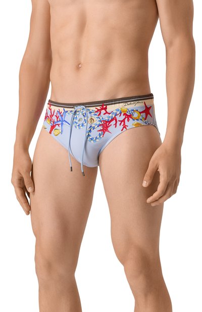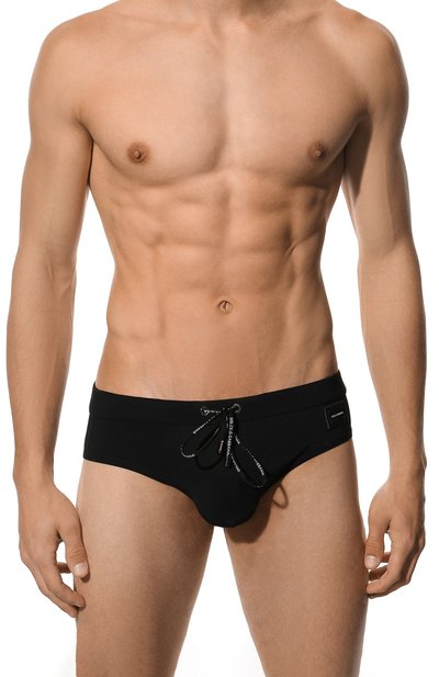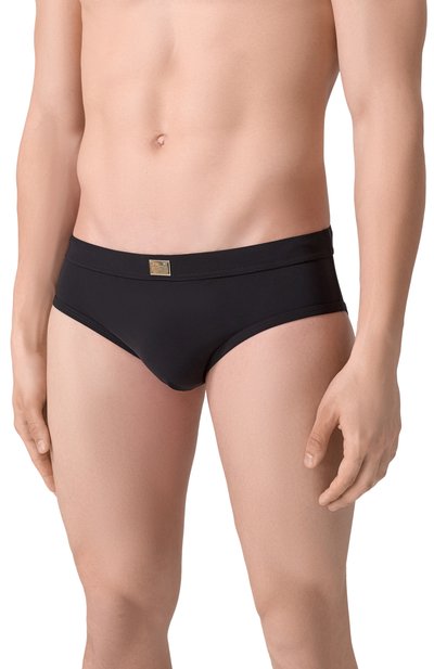 Плавки из коллекции DNA выполнили из стрейчевого нейлона. Широкий эластичный пояс модели украсили фирменной двухслойной пластиной спереди. В комплекте — чехол на молнии.