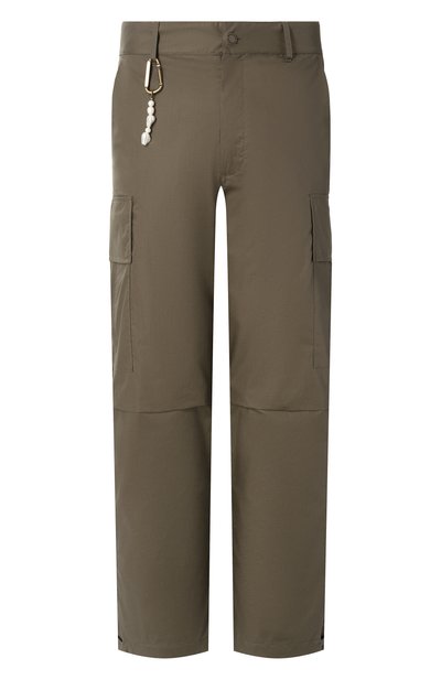 Брюки Saint со складками на коленях и усиленной ластовицей сшили из хлопкового поплина. Модель с регулируемыми ремешками по низу дополнили боковыми карманами, задними с клапанами и большими карго. На поясе сзади – нашивка с логотипом.