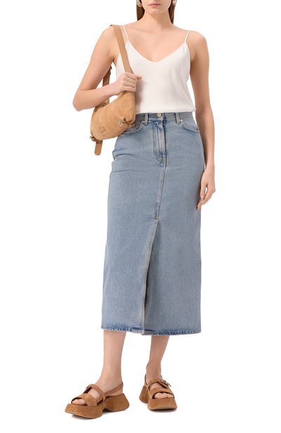 Сандалии из обработанной щетками замши застегиваются узкими ремешками сбоку и на подъеме. Модель установили на широкую вспененную подошву с формованной стелькой.