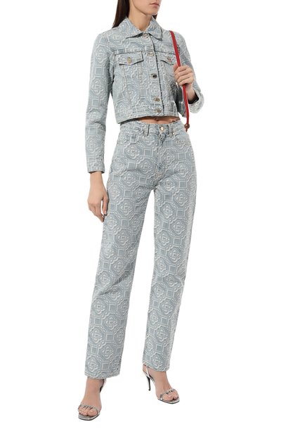 Выбеленную куртку со спущенной линией плеч, широкими рукавами и двумя нагрудными карманами сшили из денима с люверсами. Над поясом расположили фирменную вышивку 4х4. Сзади под воротником словно оставили след от бирки.