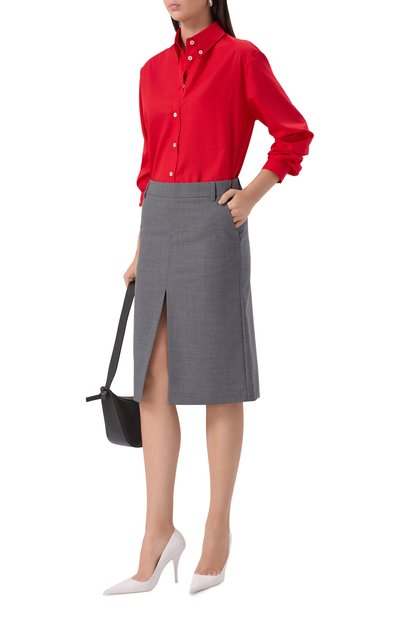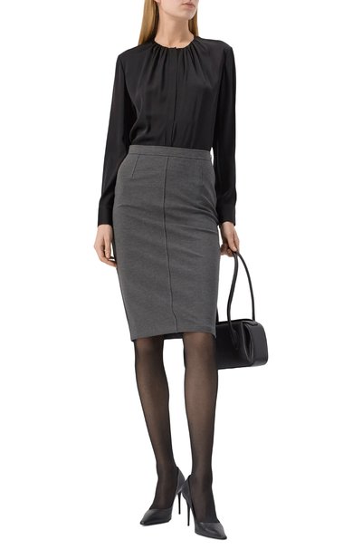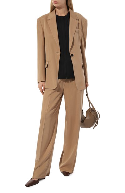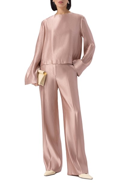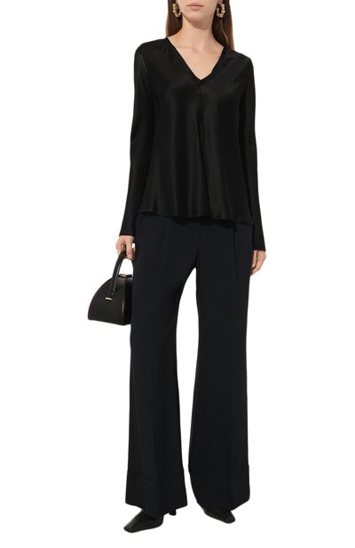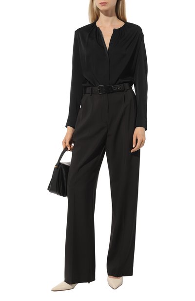 Блузу Banorah сшили из шелка с небольшим добавлением эластана. Модель с супатной застежкой и мягкой драпировкой вдоль круглой горловины дополнили прямоугольными манжетами на пуговицах.